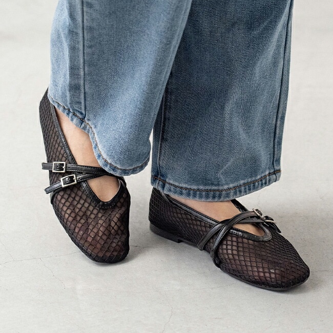 透明ベージュ フラットシューズ スクエアトゥ