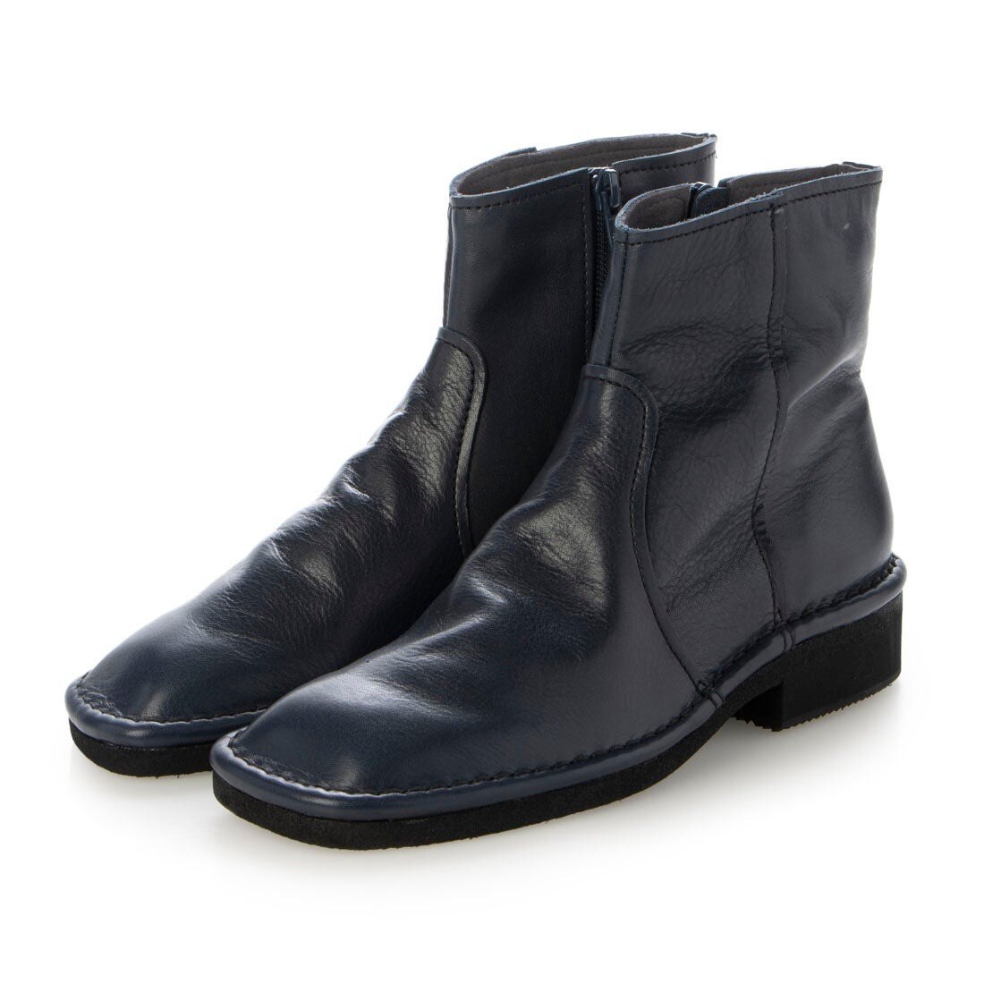 昨今のショートブーツの長めの丈ではなく、どんなボトムにも合わせやすい短めの丈感にしました。