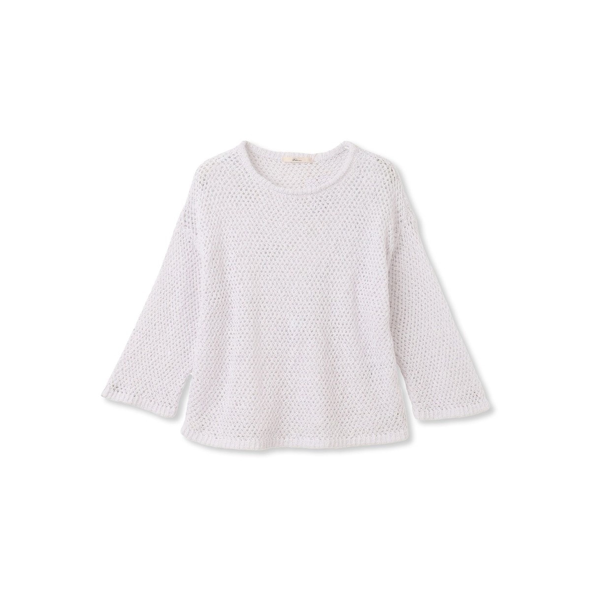 新品ASTRONOMY 透かし編みメランジドルマンメッシュ5分袖サマーニット 白