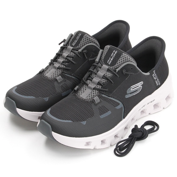 立ったままハンズフリーで靴の脱ぎ履きが可能なSLIP-INSモデル。メッシュアッパーにホットメルト加工を施した合成素材のオーバーレイ、低反発素材のSkechers Air-Cooled Memory FoamTM(スケッチャーズ エアクールドメモリーフォーム)コンフォートインソール、幾何学的でクッション性のあるGlide-Step(R)(グライドステップ)ミッドソールが特長のバンジーレースシューズ。