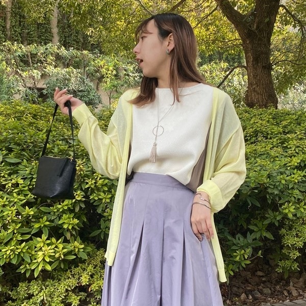 夏にピッタリな清涼感あるリネンライク素材に接触冷感を施した、ミディアム丈カーディガン。