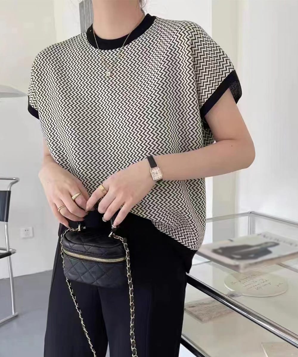 変形ストライプ柄は着回しやすく、シンプルさに遊び心をPLUS、シーンに合わせて色々なコーデに使えるbasicアイテム