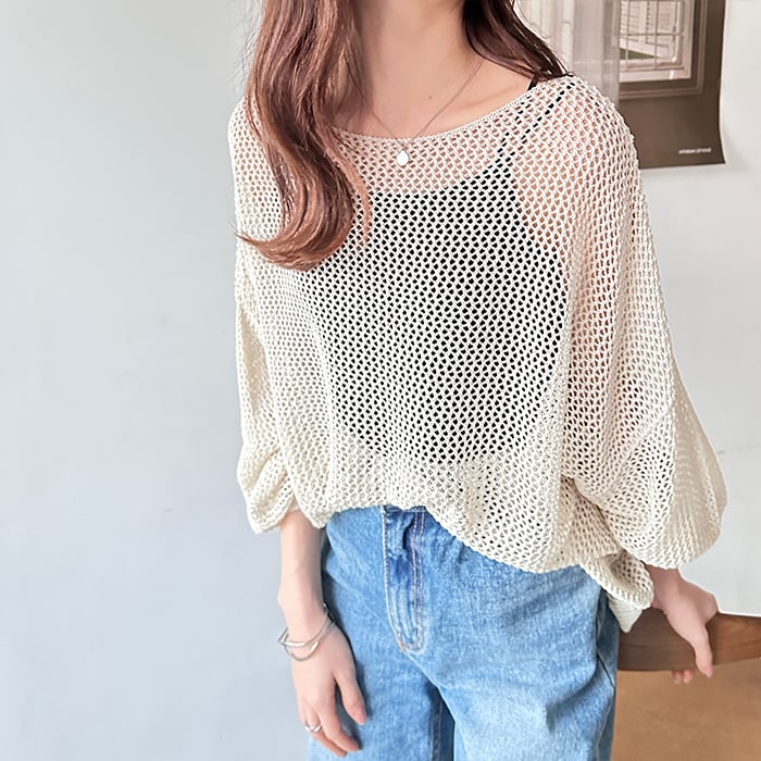 春から夏にかけてロングシーズン着られるメッシュ素材プルオーバー。
