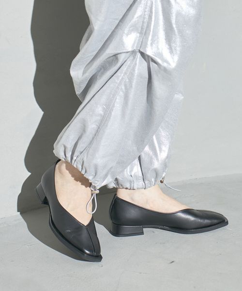 スクエアトウVカットフラットシューズ