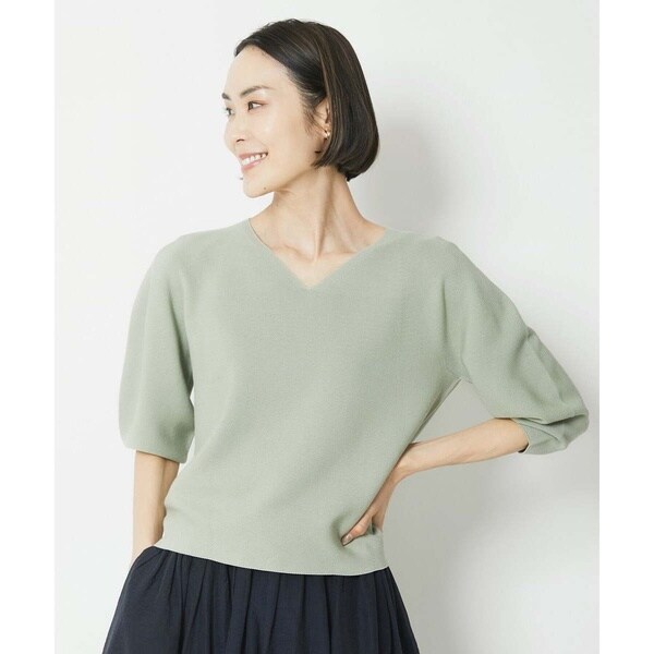 肘のあたりに立体的にボリュームを持たせた袖のシルエットが印象的なプルオーバー。浅Vネックがデコルテをきれいに見せてくれます。程よくゆとりのあるサイズ感で、オフィスでもオフの日でも着まわしていただける1枚。浅Vネックがデコルテをきれいに見せてくれます。昨年モデルより少し衿ぐり左右端の幅を狭くしました。