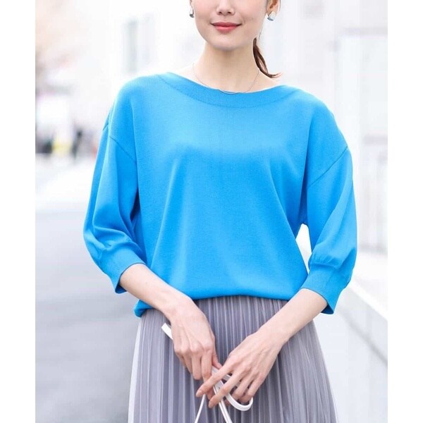 ハイゲージボートネック五分袖ニット/接触冷感/洗える/WEB限定サイズあり