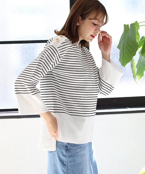 限定値下!ショルダースリットヘンリートップス長袖 トップスM相当