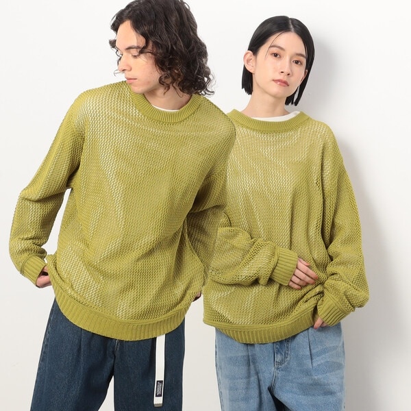 GU メッシュニットオーバーサイズプルオーバー Lサイズ ブラウン