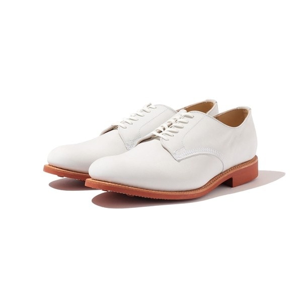 イギリス軍のサービスシューズをイメージしており、その名の通り軍でも将校以上の着用が許される特権モデルの本作を、ホワイトヌバックのアッパー、英国ITSHIDE社のレンガカラーのラバーソールで別注。ホワイトバックス等に使用されるいわゆるブリックソール(レンガソール)よりも耐久性が高く、ソールの減りも軽減、手入れを行うことで末永くお履きいただける一足となっております。