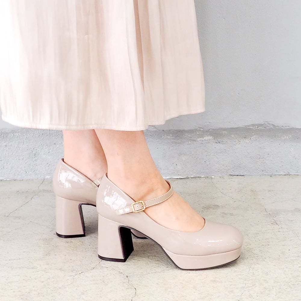 シューズ 合成皮革/人工皮革 / パテント(エナメル風) / 7.5cm以上 / 太めヒール / ふつう(D・E・2E) / スクエアトゥ / パーティー・結婚式・二次会 / セレモニー・入学式・卒業式 / 中敷クッション入り / 脱ぎ履きしやすい / 脱げにくい