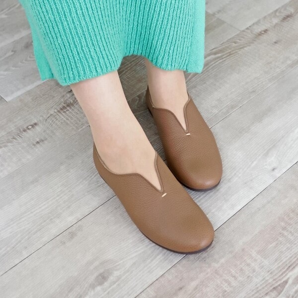 本革Vカットフラットシューズ/36/SLV/レザー/17205