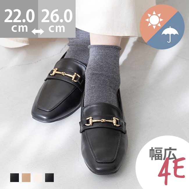 幅広 4E スクエアトゥ ビットローファー