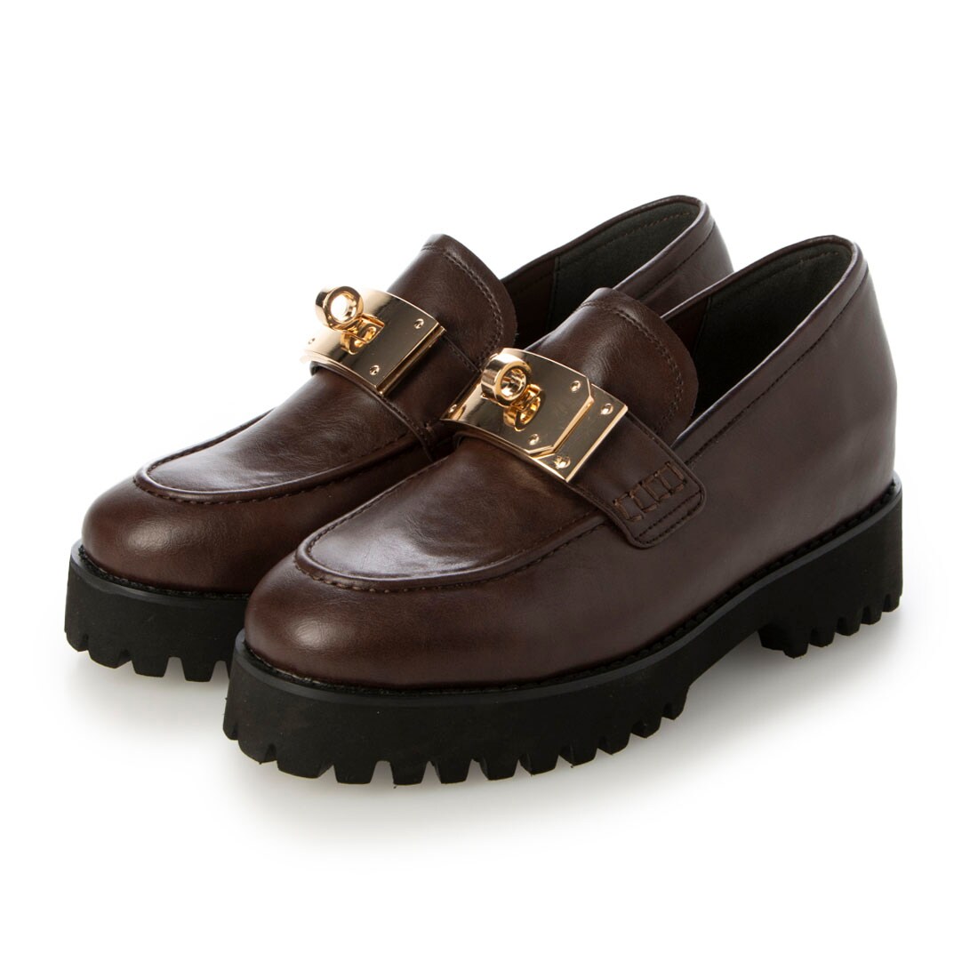 ゴールドが目を引く、金具デザインがポイントの大人っぽい1足です。2cmのインヒールが入っているので、足元をさりげなくスタイルアップさせてくれます。程よい厚底を使用したローファーなので、キレイめになり過ぎずカジュアルにも合わせやすいです。