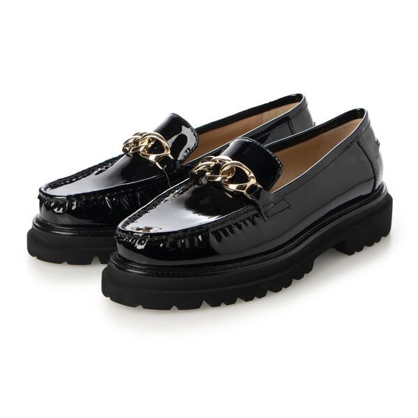 厚底ビットローファー 黒 ブラック レディース 23.5〜24cm相当 靴 歩きやすい 美脚 Mサイズ カジュアル ガーリー 万能 ゴールドチェーン