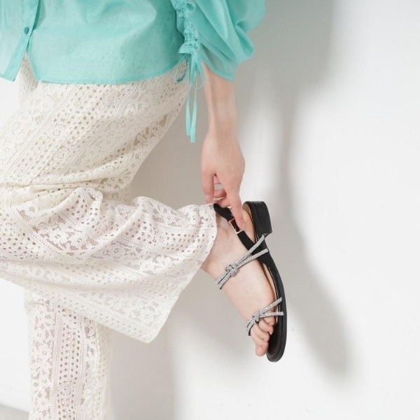 私は足幅が広く、甲が高めなのでLサイズを選んだので足長は少し大きめでした。ベルトの結び目が甲に当たって少し気になるかもしれません。キラキラして可愛いのでキラキラ好きさんにおすすめです!