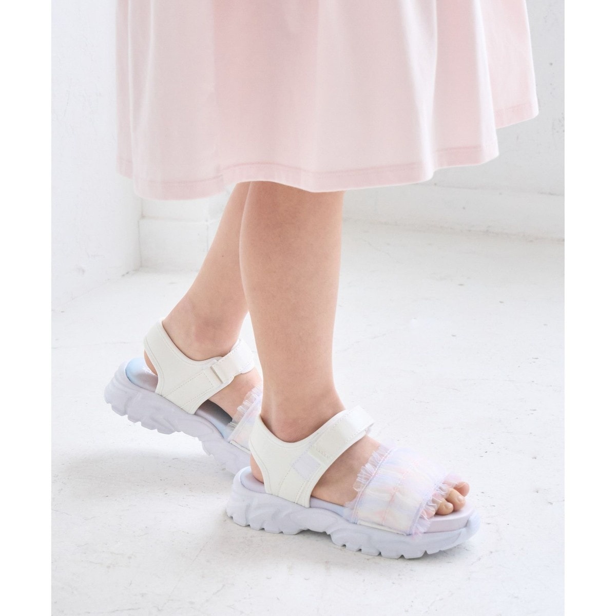 ・フロントにあしらわれたフリルが、甘さをプラスしつつも、厚底で大人っぽく仕上げています。