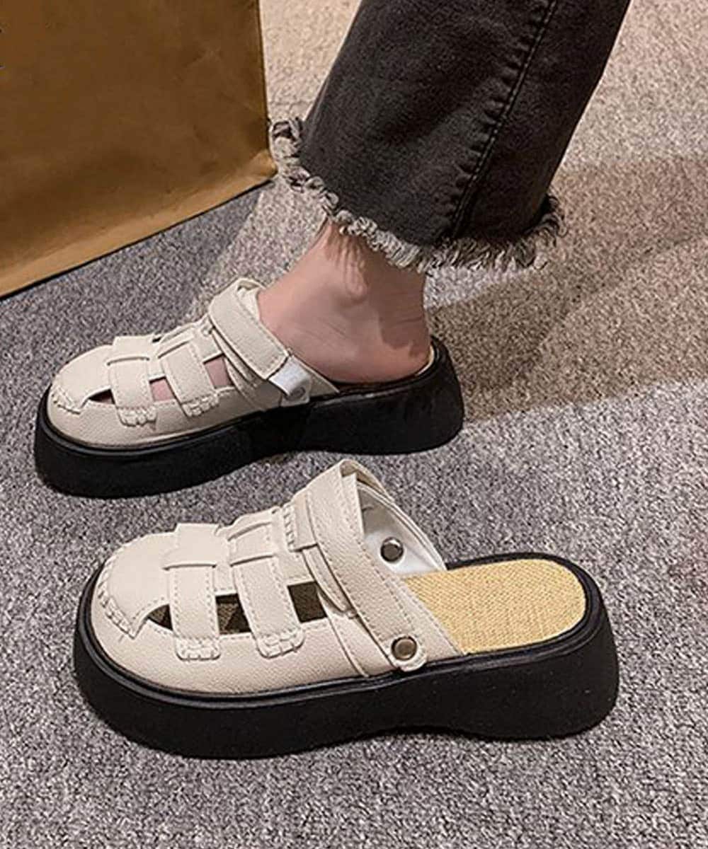 編み込み風のデザインが施されており、カジュアルながらも個性的な印象を与える2WAY厚底サンダル