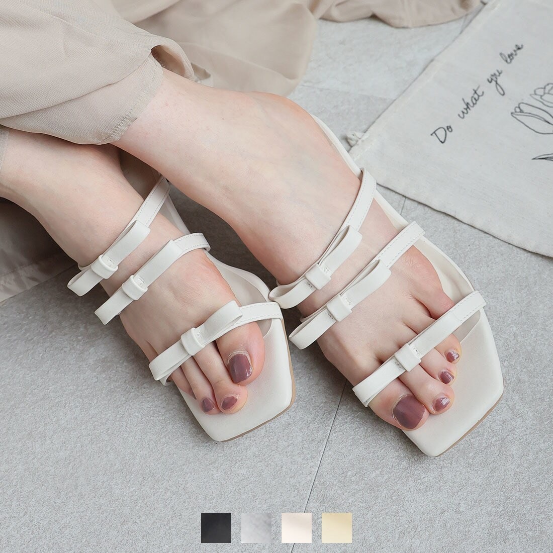 ・大人っぽい3つのリボンがアクセントの華奢ストラップサンダル