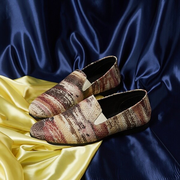 アンティーク調プリントが特徴的な一足。