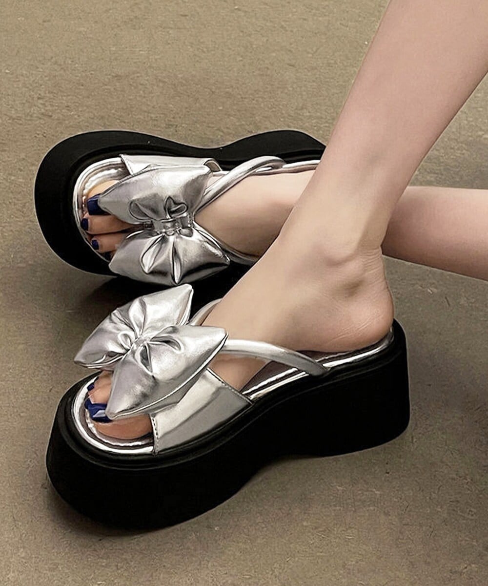 メタリックシルバーのアッパー素材が、華やかな印象を与える