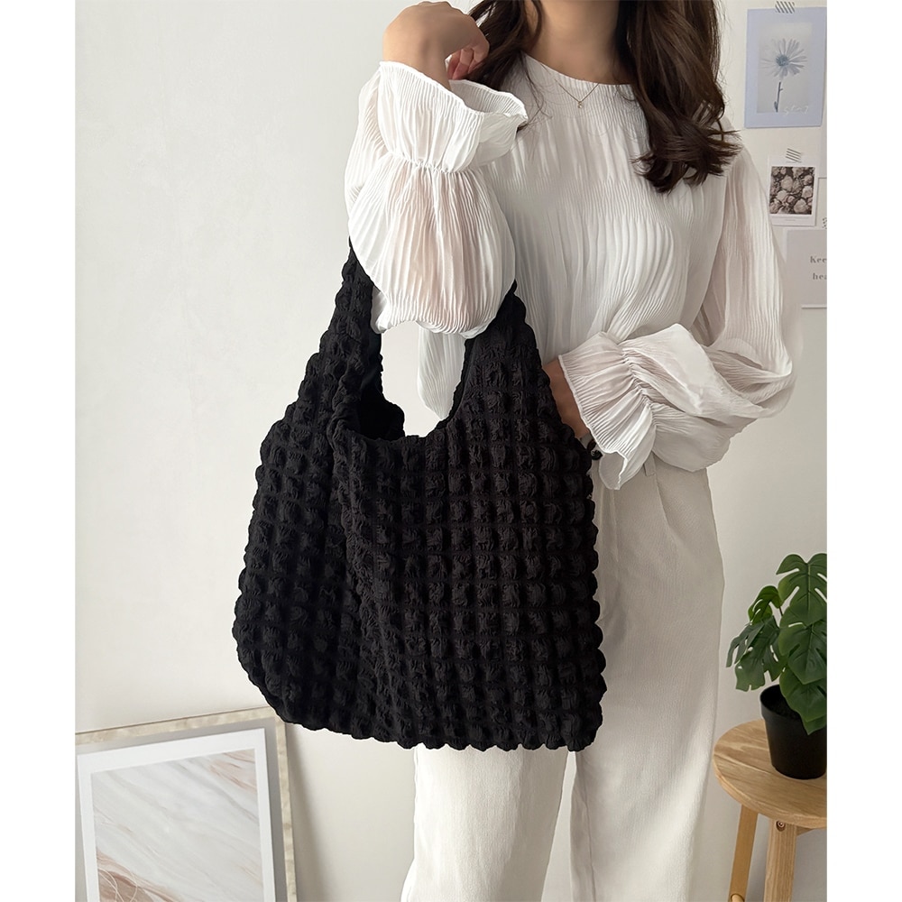 キルティング 黒 トートバッグ レディース コンパクト ナイロン ショルダー