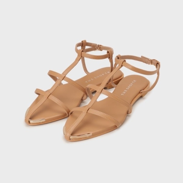 華奢なストラップとポインテッドトゥで脚をきれいに見せてくれるフラットサンダル!