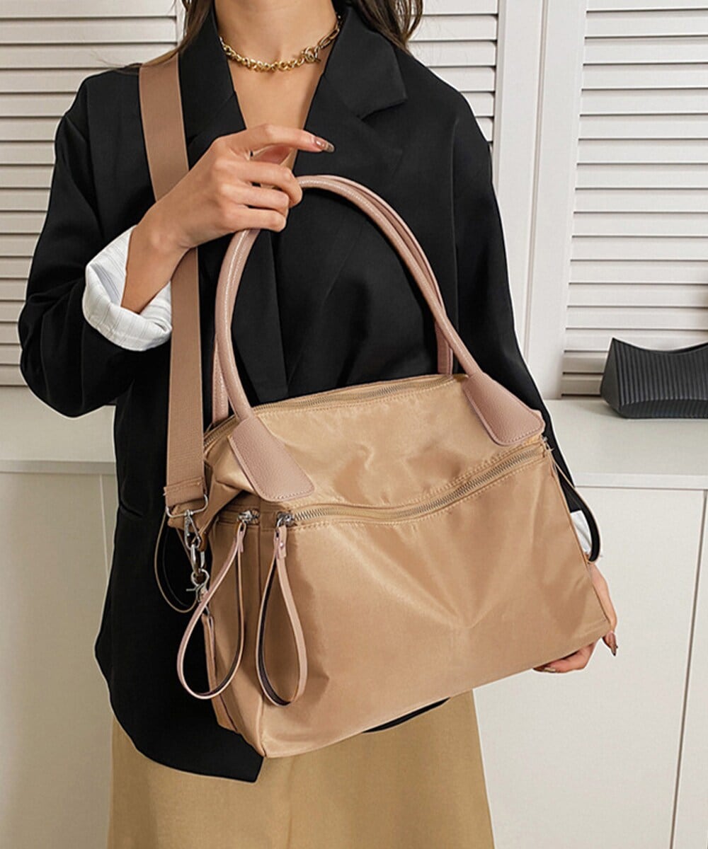 ショルダーストラップとハンドルの両方が付いており、肩掛け・斜め掛け・手提げの3way仕様で使い分けが可能