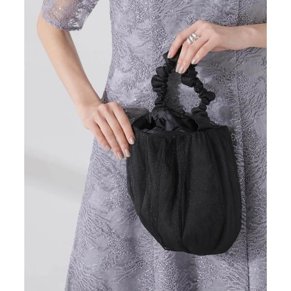 コロンと丸いフォルムが可愛らしいバッグ。ハンドル部分にたっぷりとギャザーを寄せて、フェミニンさとトレンド感を演出。パーティシーンはもちろん、カジュアルなシーンにもお使いいただけます。