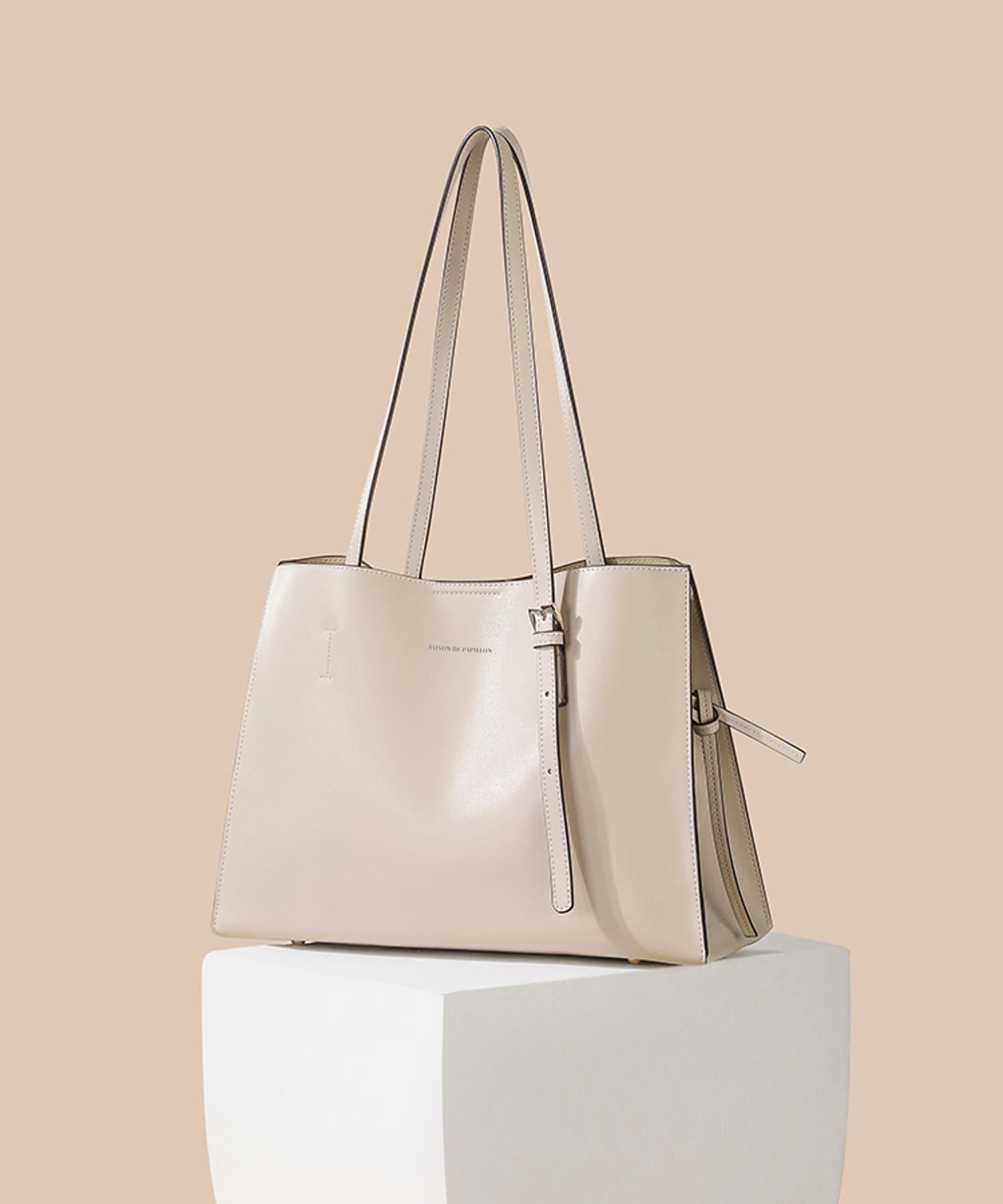 高品質PUレザーを使用しているので柔らかな素材感が美しく、耐磨性を実感できる丈夫な作りが魅力的なバッグです。持ち手が長いので肩にかけやすく、書類やP Cなど重量のある物の持ち運びにも便利。汚れや傷から守ってくれる底鋲付きも嬉しいポイントです。