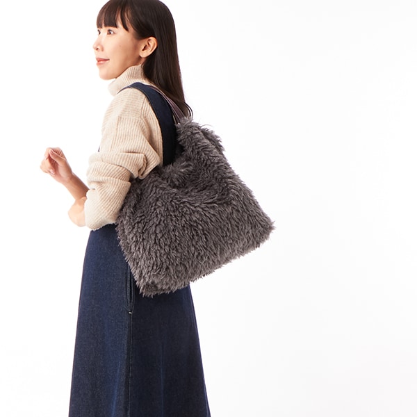 バッグ ファー ニット素材 / ファー・毛皮(フェイク含む) / ポリエステル素材 / アクリル素材 / 無地 / 大(幅31~45cm以下) / ライフスタイル / アウトドア / ビジネス / カジュアル / 軽量 700g以下 / A4収納可 / 旅行・出張対応