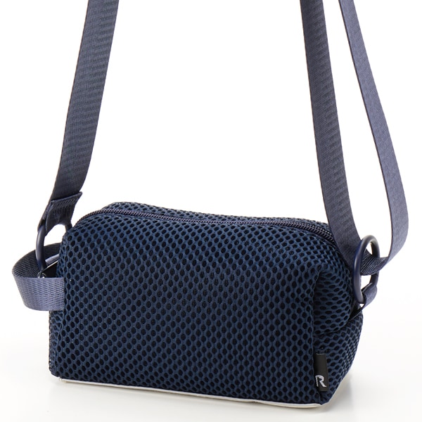 アクティブな活動シーンに活躍する超軽量なメッシュミニショルダーバッグ。外付きの合皮ポケットはカードホルダーとしても。