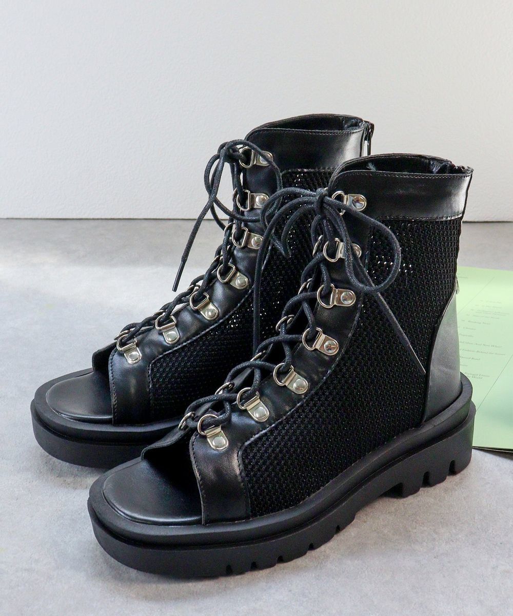 シューズ メッシュ / 透かし編み / 4.5cm~7.5cm未満 / フラットヒール / ふつう(D・E・2E) / スクエアトゥ / カジュアル / その他サンダル / レースアップタイプ / 中敷クッション入り / 脱ぎ履きしやすい / ゴム底/合成底