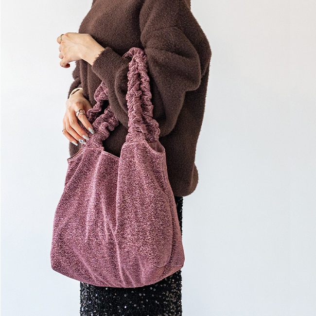 【2WAY】ドロストフリルハンドルラメミドルショルダーバッグ