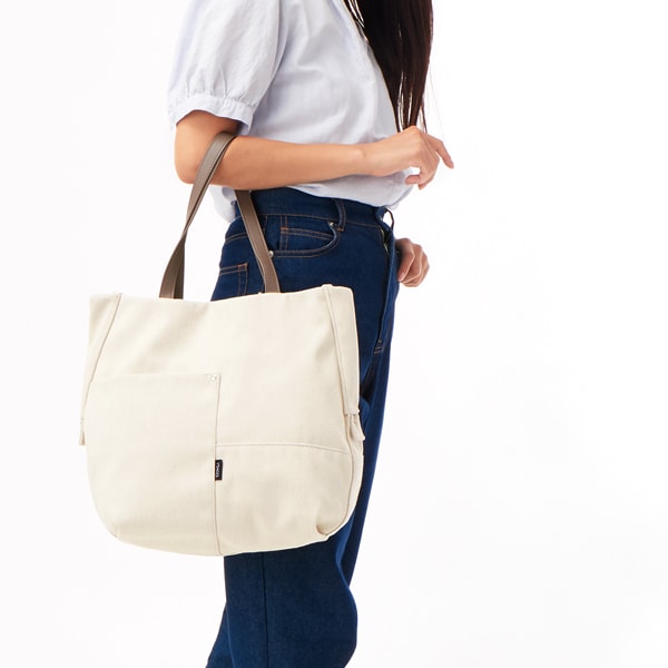 表地:綿 付属:リサイクルレザー 裏地:ポリエステル