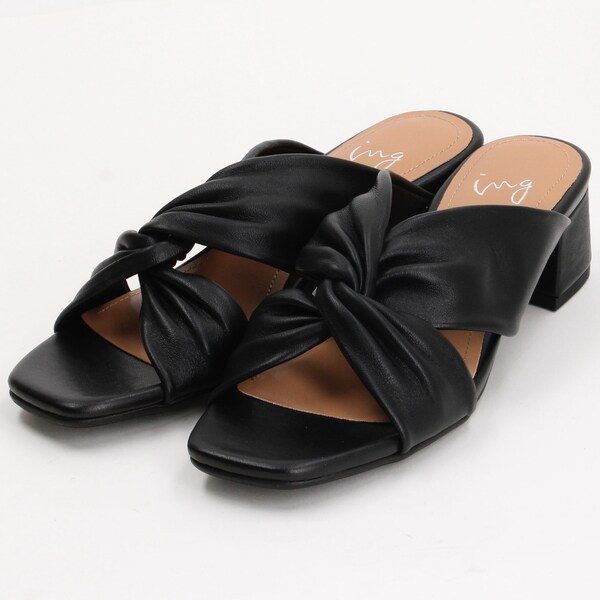 クロスストラップ ブラックサンダル 中ヒール