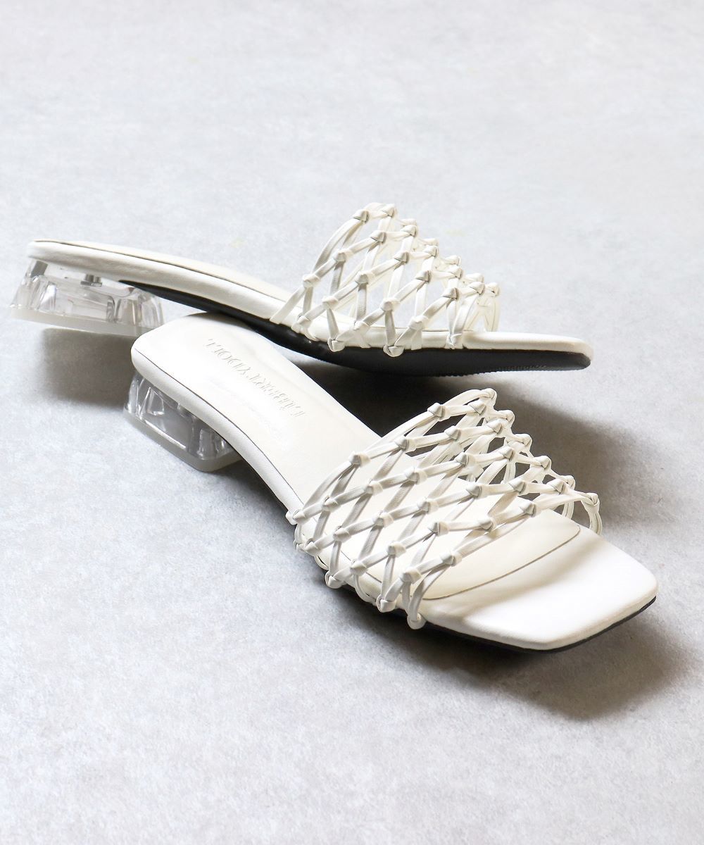 ★スタッフおすすめ★編みベルトクリアヒールサンダル/4146 ◆[素材.形.特徴]ヒール中寸なので履きやすく、ミュール 上品 おすすめ おしゃれ ★売れ筋★ 人気 高見え 高級感
