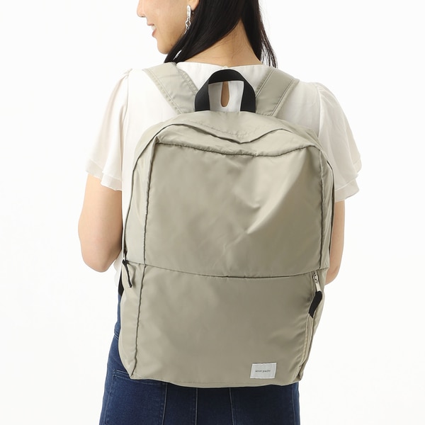 ポリエステルリサイクル生地のリュック。なんと変形してトートバッグに変形します。旅行先で用途に合わせてトランスフォームできます。