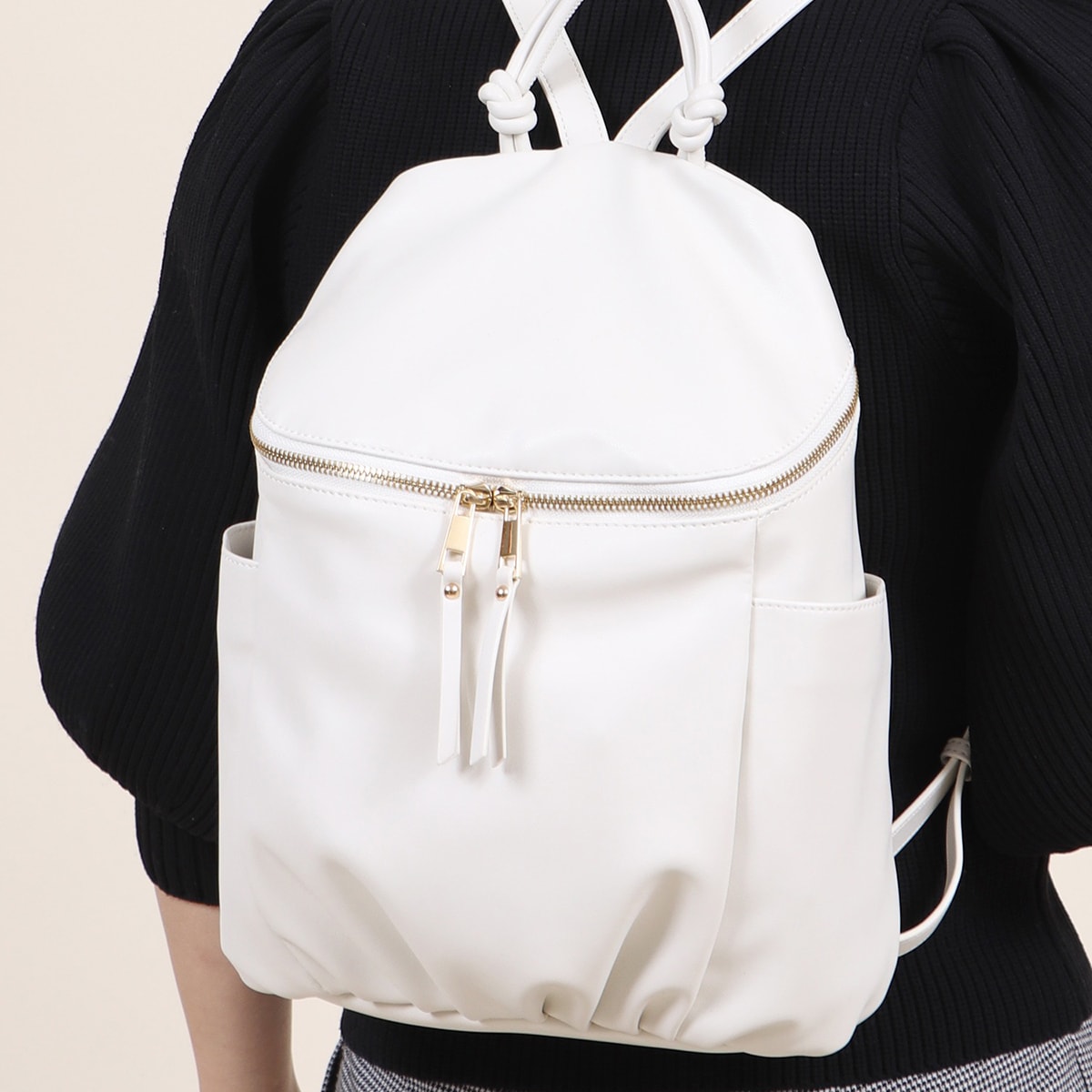 フェイクレザー ギャザーデザイン バックパック