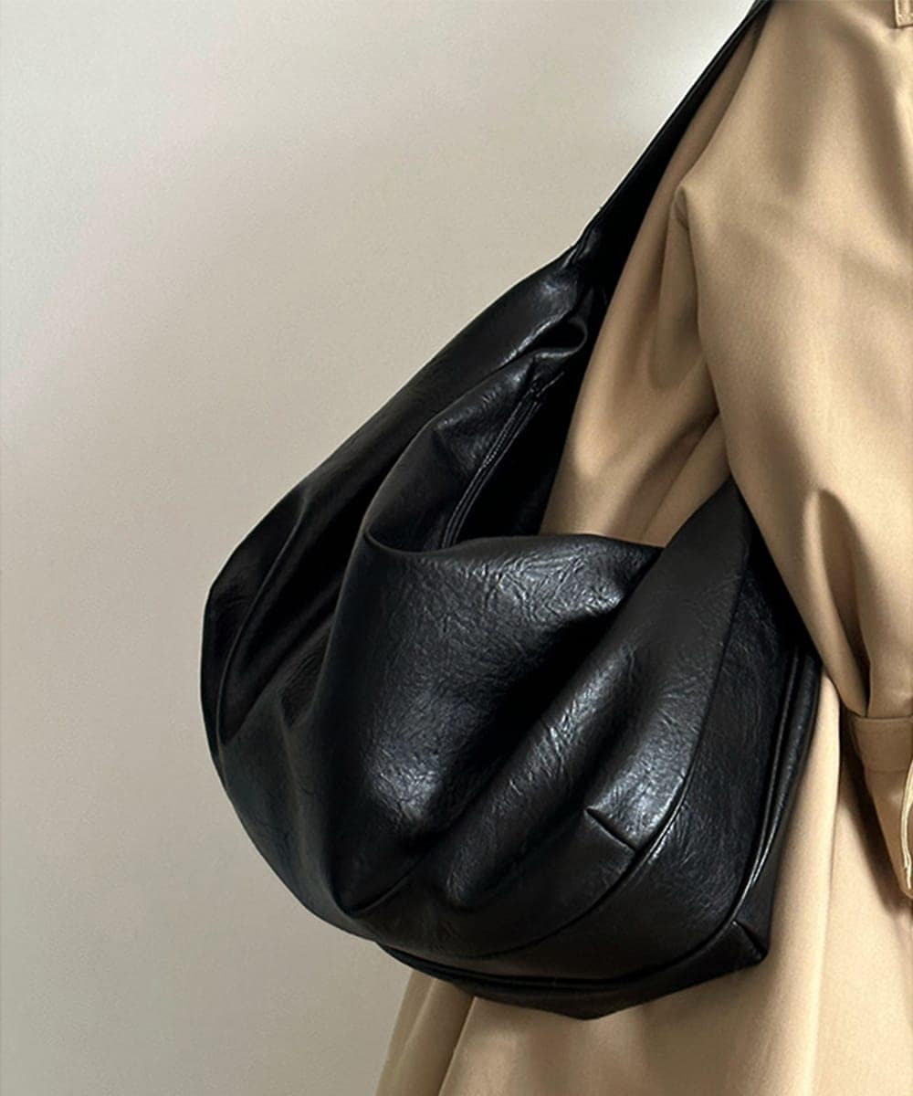 くったりとした風合いのフェイクレザーを使用しているので、持ったときに身体に馴染みやすく、デイリー使いにぴったり。