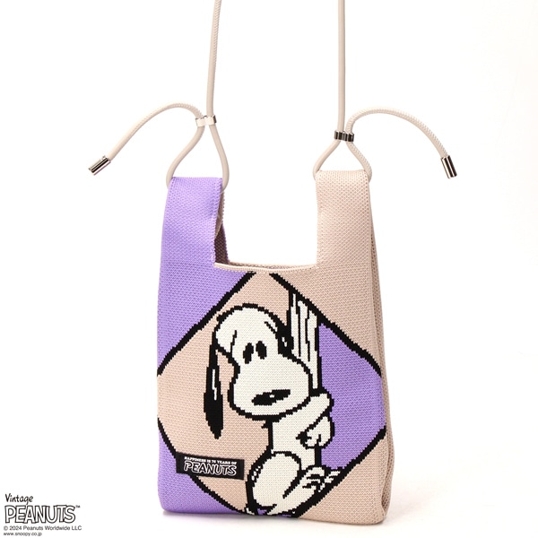 未開封 PEANUTS×ルートートIPベビールー Peanuts-9T ニット調生地ミニショルダーバッグ Beigeスヌーピー