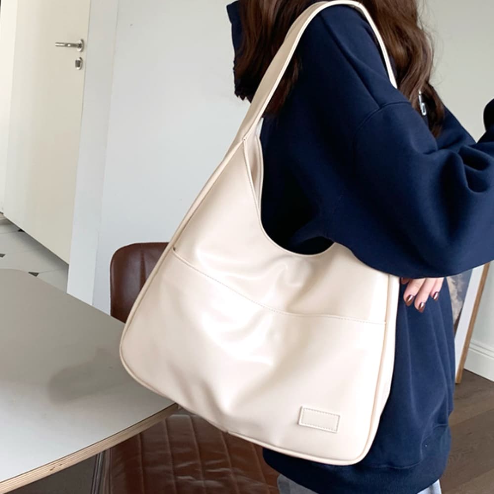ビッグポケットトートバッグ/レザー/BLK/無地