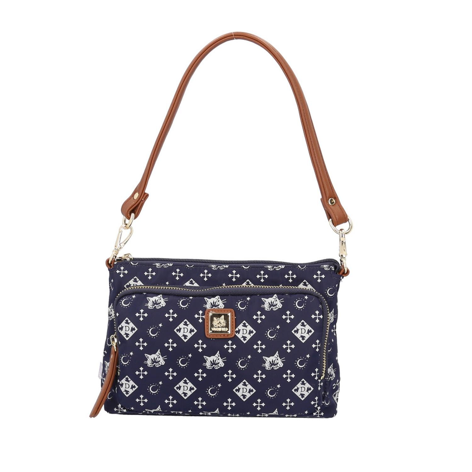 【可愛いネコちゃんとお出かけ】ネコのダヤンが描かれたモノグラムデザインがポイントなお財布付きショルダーバッグ。【わちふぃーるど 】「不思議な国わちふぃーるど」は、絵本作家池田あきこ氏が手がける、猫が活躍する物語。【ブランドシンボル、猫のダヤン】物語の主役「ダヤンが」一面に散りばめられたとっても可愛いアイテム♪【サブバッグやレジャー用に】スマホやハンカチ、パスケースなどお出かけの必需品入れに。サブバッグやレジャー用に最適。【ちょうどいいサイズ感】毎日の持ち運びに便利なコンパクトサイズ!ワンマイルのお出かけ用にもオススメ。【嬉しいお財布機能】フロントのポケットは、小銭入れ、カードポケットが備わっておりお財布として使える。【便利なポケット】内側にポケットを配置。小物が多くなっても整頓できるのがポイント。【長さ調節ができるショルダー】ショルダーベルトは長さ調節ができ、斜め掛け・肩掛け両方OK!【手持ちでも使える】ハンドルストラップがついており、手持ちでも使用可能。【ストラップは着脱可能】ショルダー・ハンドルはシーンに合わせて着脱可能。ポーチやバッグインに使うのも◎【はっ水機能付き】表地は水分がしみ込みにくいはっ水機能。汚れが付いても簡単に拭き取りが可能!【カジュアル過ぎないデザイン】程よい光沢感のナイロン生地に、ゴールドパーツを組み合わせたラフ過ぎないデザイン。【ブランドロゴ付き】フロントには「WACHIFIELD」とダヤンが描かれたプレートを配置。【ポケット仕様】メインルーム・・・オープンポケット×2、ファスナーポケット×1フロント・・・ファスナーポケット×1(カードポケット×12、お札入れ×2、フリーポケット×1、小銭入れ×1)