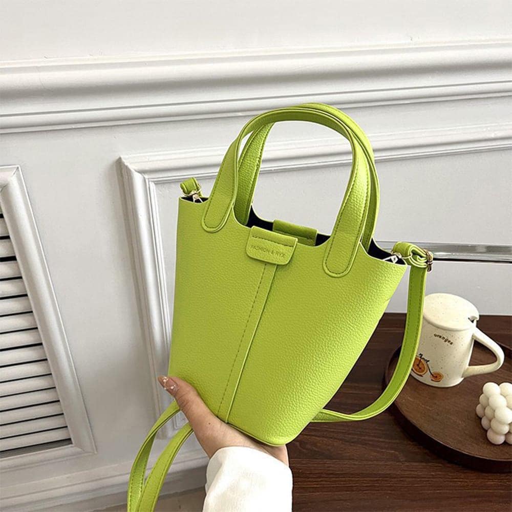 小さめで持ち歩きやすいバケツ型PUレザーハンドバッグ