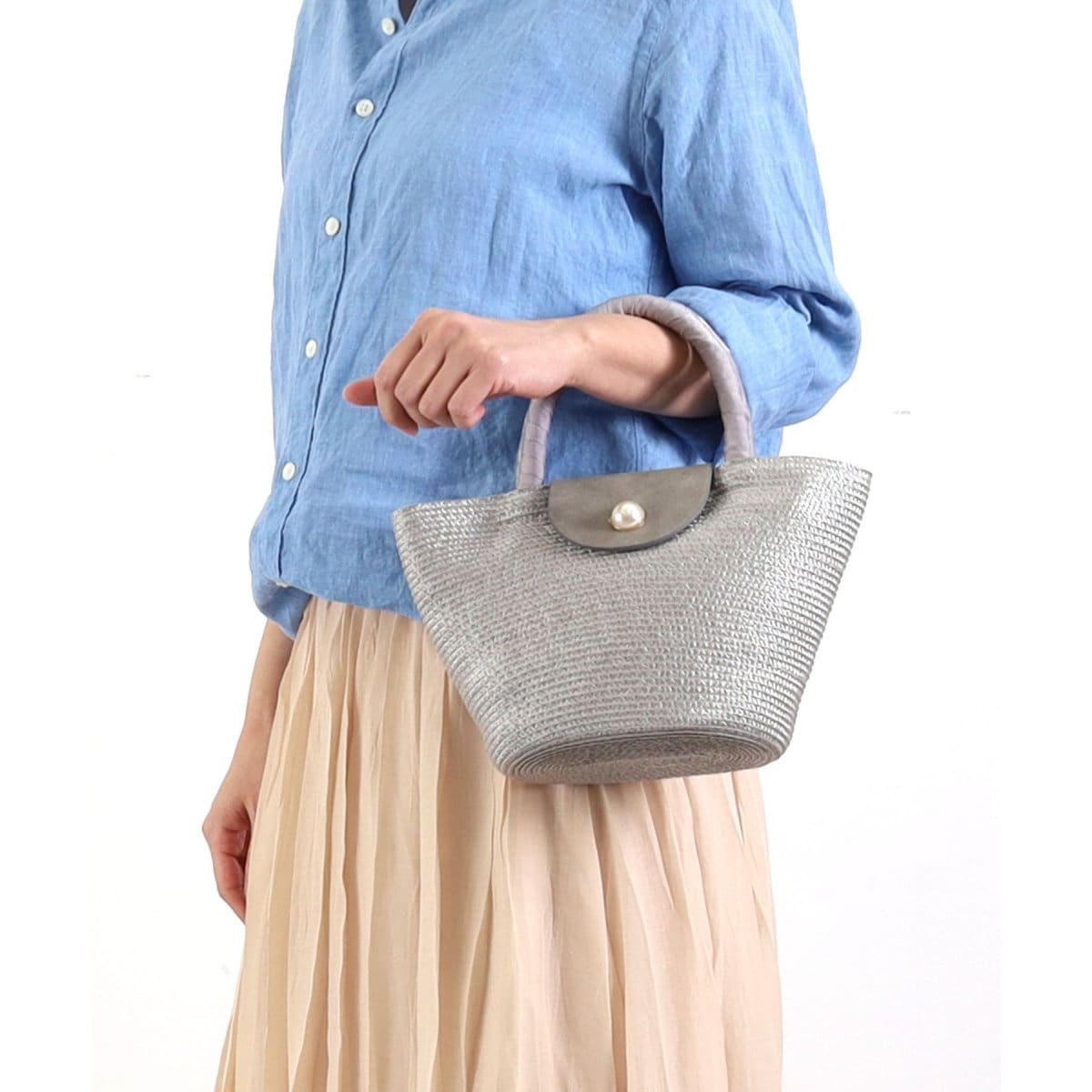 (未使用)COOCO オリジナル柄テープxメッシュポーチ付マルシェ型バッグ クーコ バッグ ポーチ メッシュ [1490]
