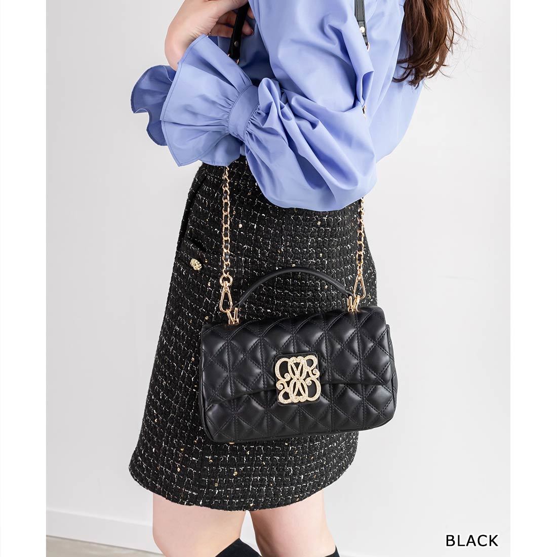 RANDA 2WAY モノグラムビジューキルティングバッグ black
