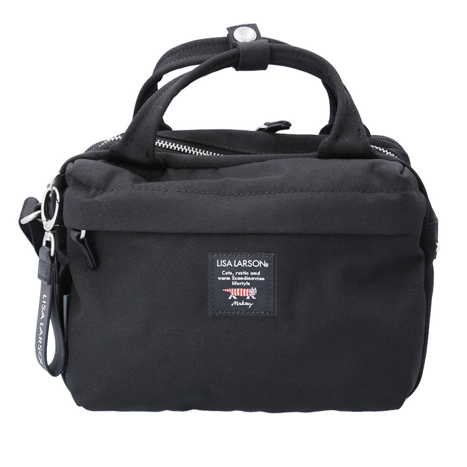 【マイキーがチャームポイント】猫のキャラクターが可愛い♪LISA LARSONからウォレットショルダーが登場。【遊び心あるLTPKシリーズ】リサの遊び心を存分に感じられるバッグシリーズ「LTPK」温かみのある表情豊かさが持ち味【嬉しいお財布機能付き】背面ポケットはお財布機能があり、カードや現金をまとめて収納!【デイリー使いにピッタリ】コンパクトなサイズ感で毎日の持ち運びに便利なアイテム♪【しっかり収納】メインルームはマチ幅が広く、内外側に多数の収納ポケット付きで見た目以上の収納力◎【2WAYで使える】バッグにはハンドルがついておりトートとしても使用可能。ショルダーは斜めがけOK!【軽はっ水】はっ水加工を施したバッグ本体生地。ちょっとした雨や汚れがついても安心♪【エコライフを心がけている方に】ペットボトルを再利用したリサイクルポリエステルを使用。エコライフを心がけてい方にも。【チャームやケースの取り付けに】フロントにチャームやケースの取り付けに便利なDカンを配置。【可愛さUPの内生地】マイキーが賑やかにならんだ裏生地のデザインにも注目!ちらっと見えるマイキーがキュート。【細部までブランドのこだわりを】ブランドオリジナルのボタンや織ネームなど、こだわりあるデザインとパーツを使用。【スムーズに開くYKK製】ファスナーパーツはすべてYKK製で統一。引っ掛かりが少なくスムーズに開閉。【本革を使用】内側のロゴネームやファスナーの引手に本革を使用。見た目や耐久性もアリ!【裏生地と同じ柄のエコバッグ】バッグ裏生地と同じ柄の可愛いエコバック。コンパクトに畳めるスナップボタンバンド付き。【マイキーリフレクターチャーム】リフレクターチャームが自動車のライトをキラリと反射するので、夜間の外出でも安心。