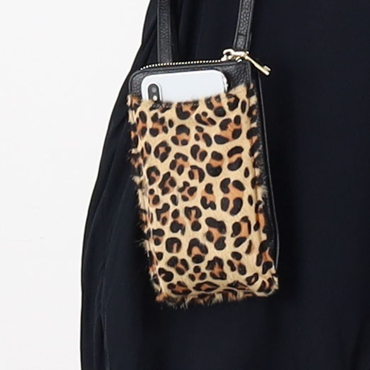 COOCO/クーコホースヘア×シュリンクレザースマホショルダー(ホルスタイン柄)