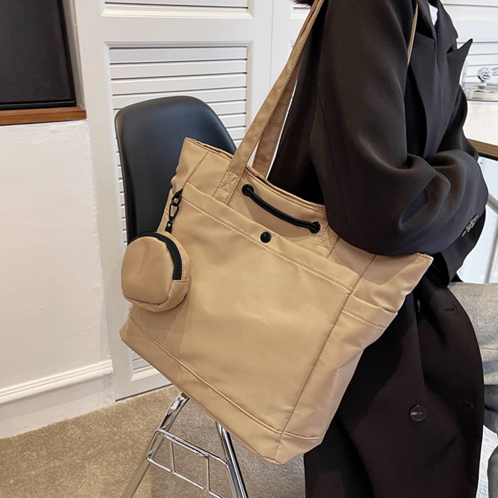 【ラスト1点】キルティングトートバッグ ミニポーチ付き ジッパー アイボリー