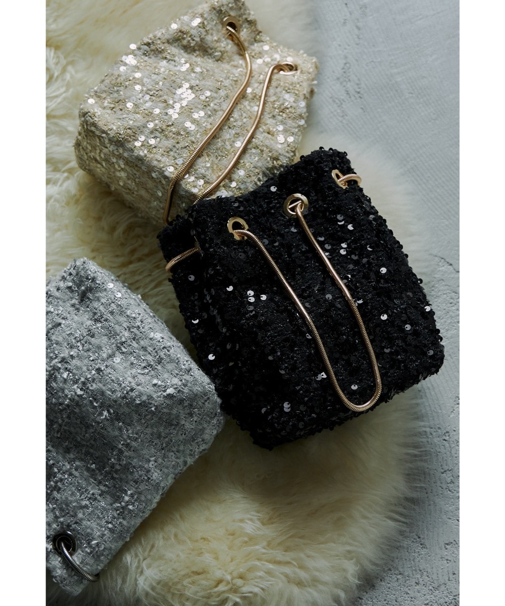 niana ニアナ ツイードスパンコールが目を惹く巾着バッグ。