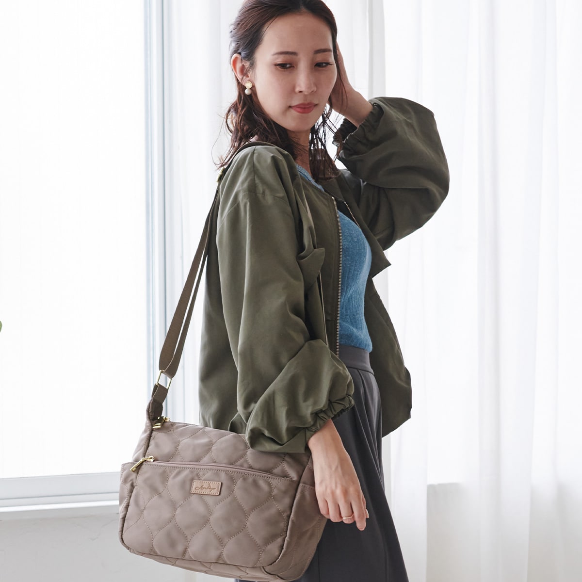 LIZDAYS リズデイズ キルティングショルダーバッグ 斜めがけバッグ 撥水加工 ミニバッグ カーキー